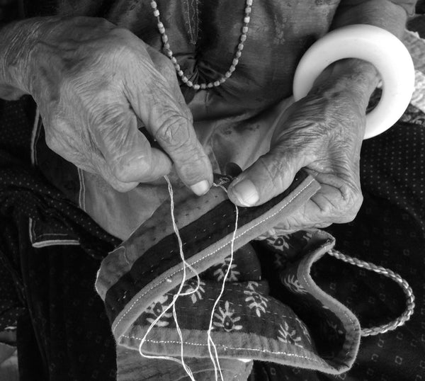 Our story starts with the Godhadis - hand-quilted blankets native to Maharashtra, India. Women refurbish old saris or bits of cloth by hand stitching multiple layers together to create a warm blanket. Each piece is made by a group of women, is an extremely social process and takes several days to complete.